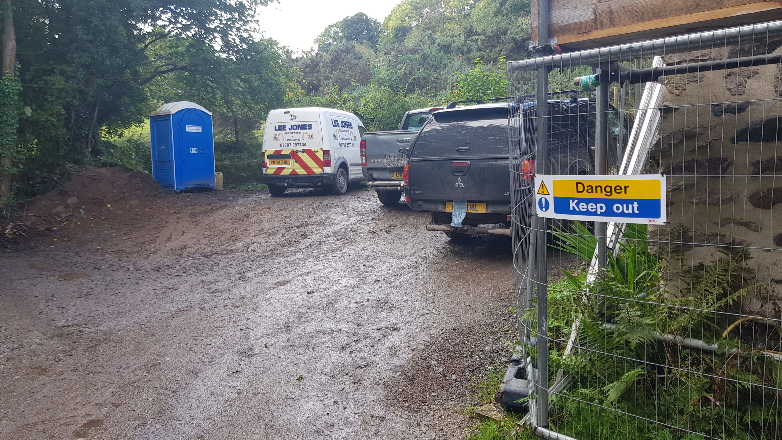 One of the problems that has come up with this rebuild is the lack of turning area for large lorries delivering materials. To that end our old parking are has been enlarged to cater for the trucks and a new parking area has been created for contractors etc to park. This has involved a certain amount of landscaping and the addition of some gabians to create a new area that can take up to 4 vans.