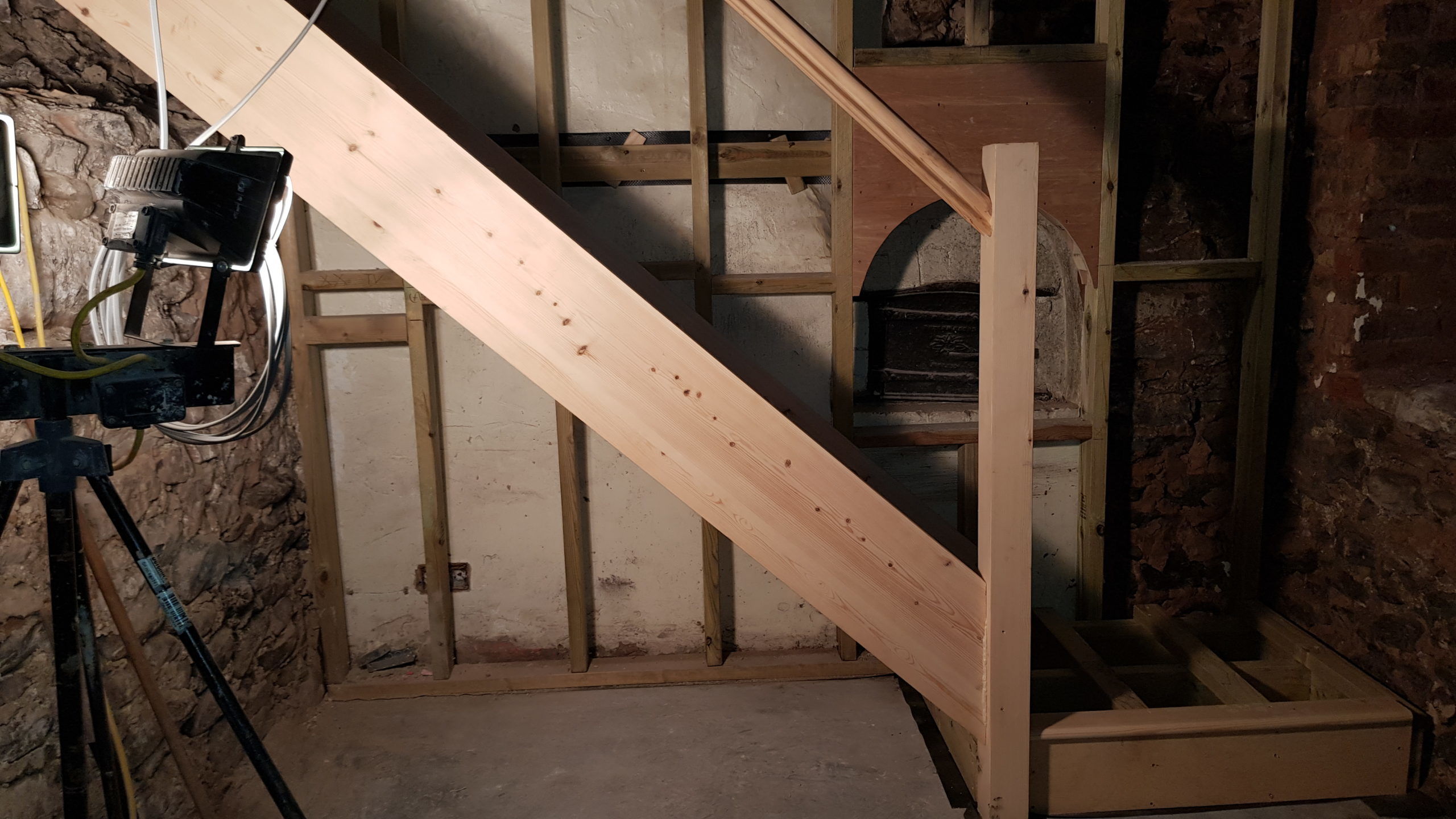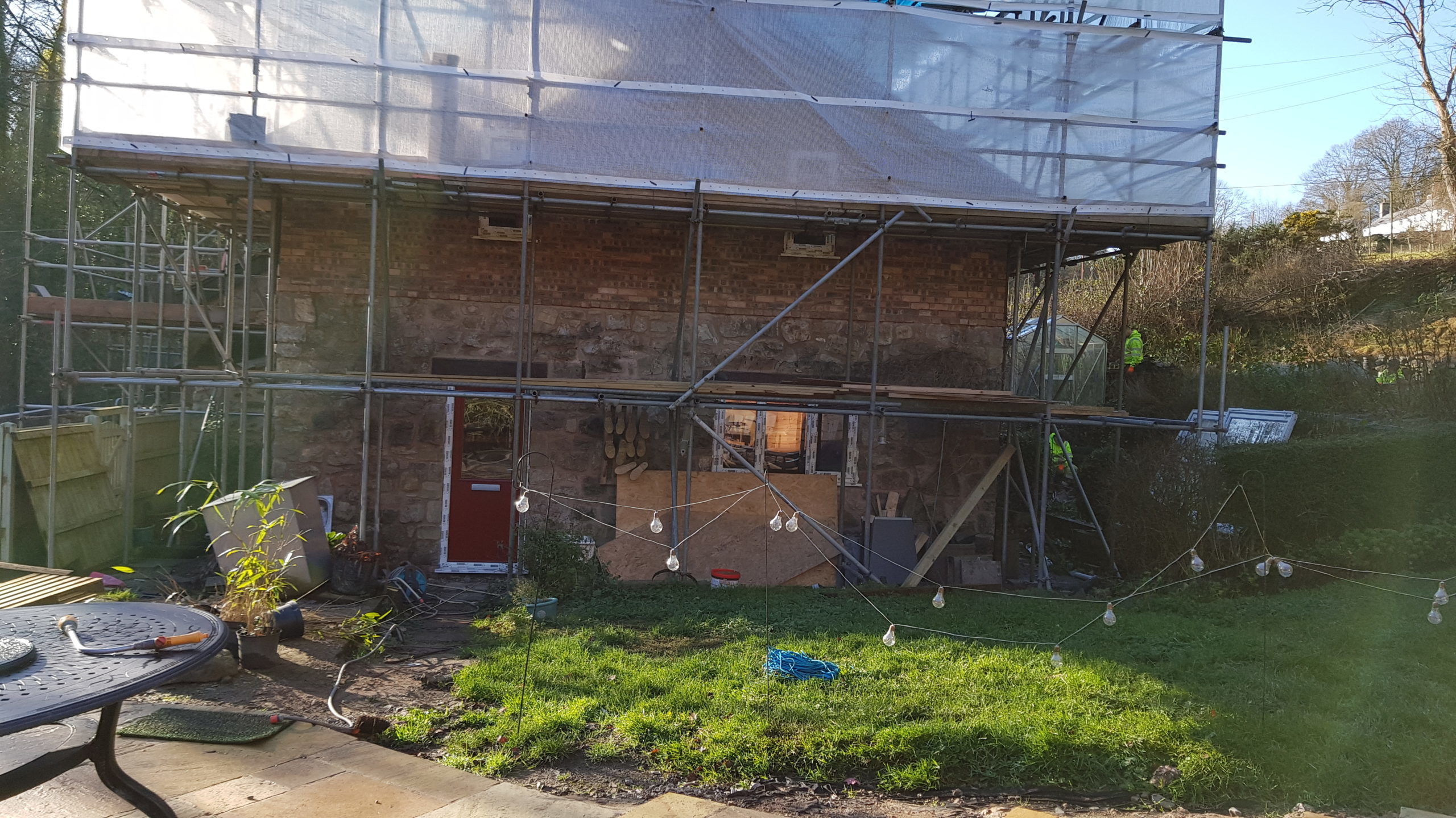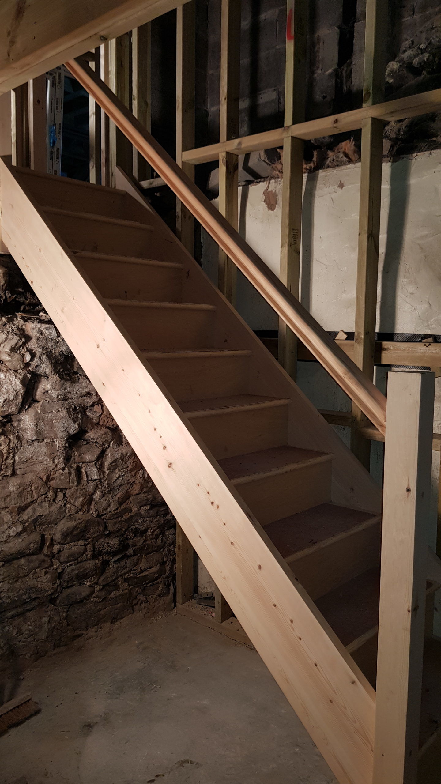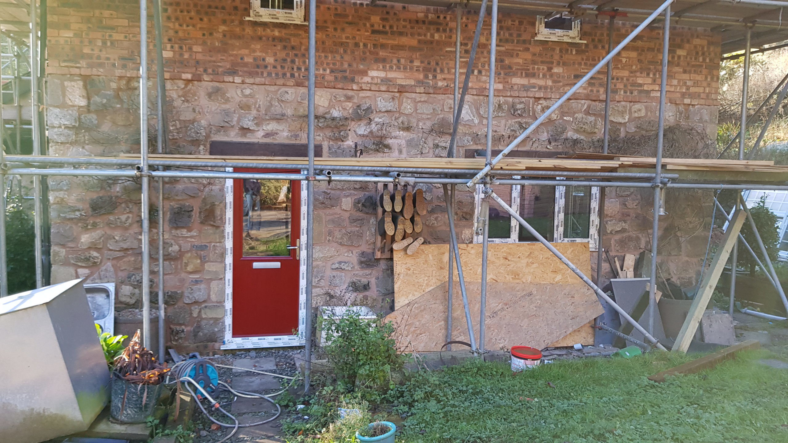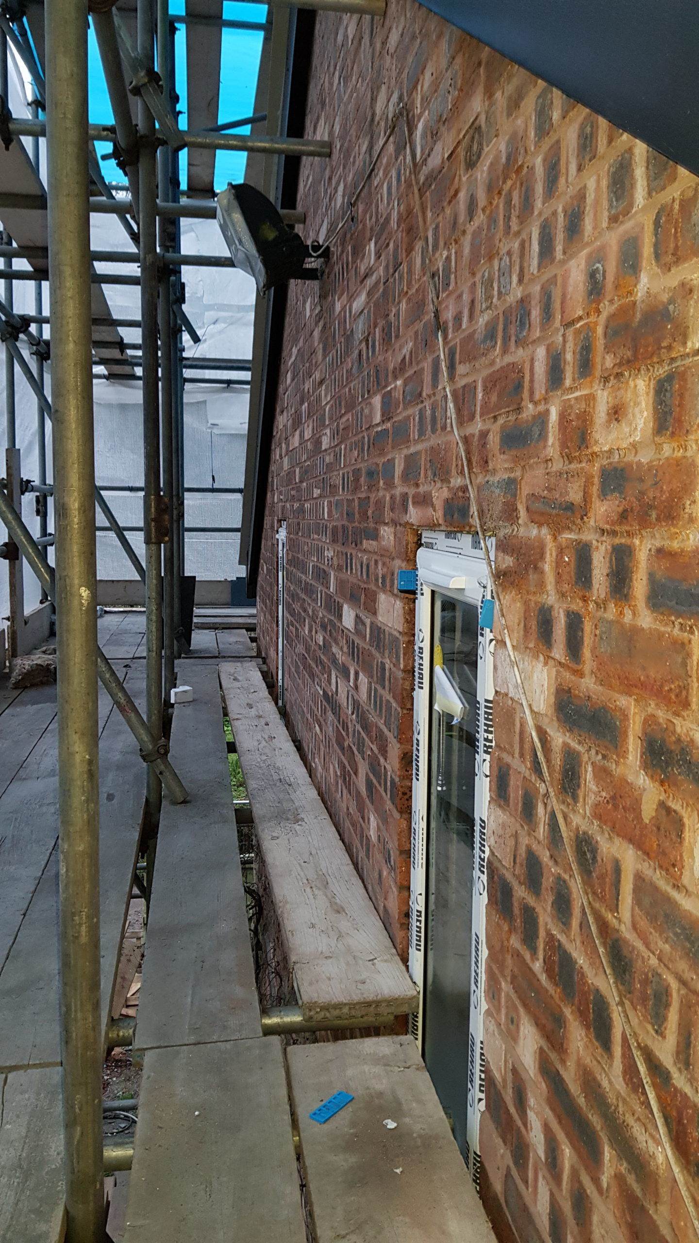 The roofers hope to finish the job by the middle of this week which then means that all the scaffolding can be taken down! The new staircase has been installed. First fix of the electrical and data cabling should now be complete, and we are now waiting for the plumbing first fix to be completed too. The first blowers is in trying to dray out the couple of walls that were not completely covered by the scaffold roof. The original chimney has been re-rendered and all the new exterior doors and windows have been replaced (excluding the front door as it is in constant use and may get damaged!)
