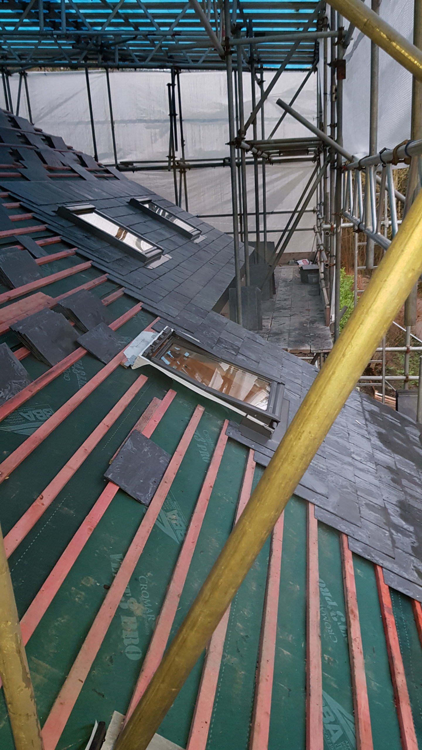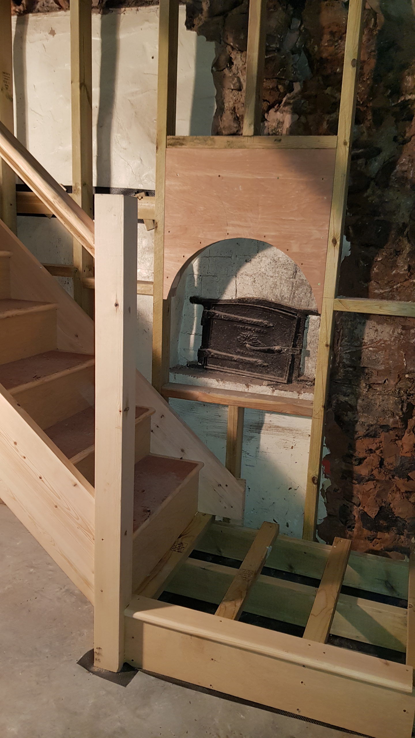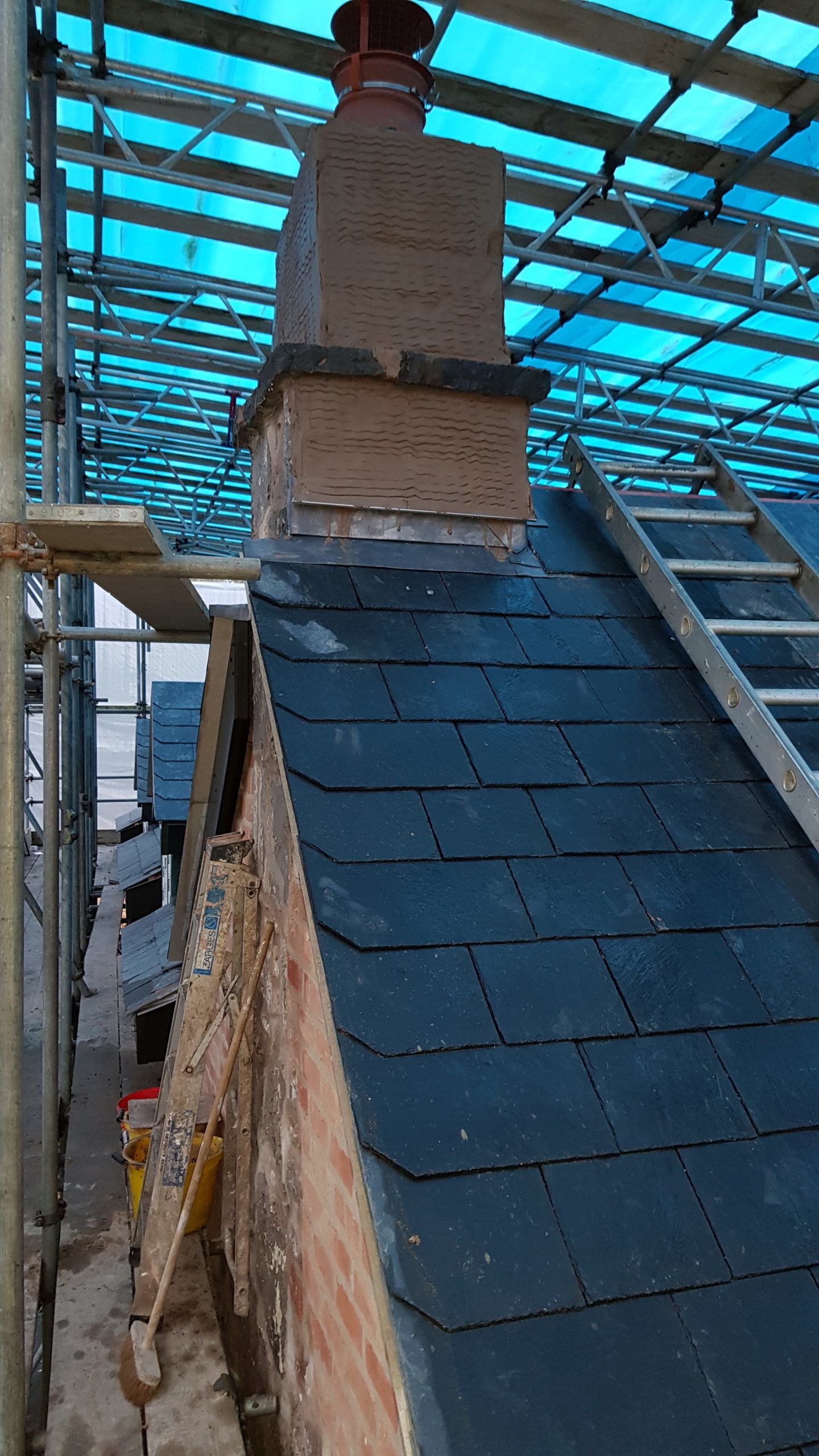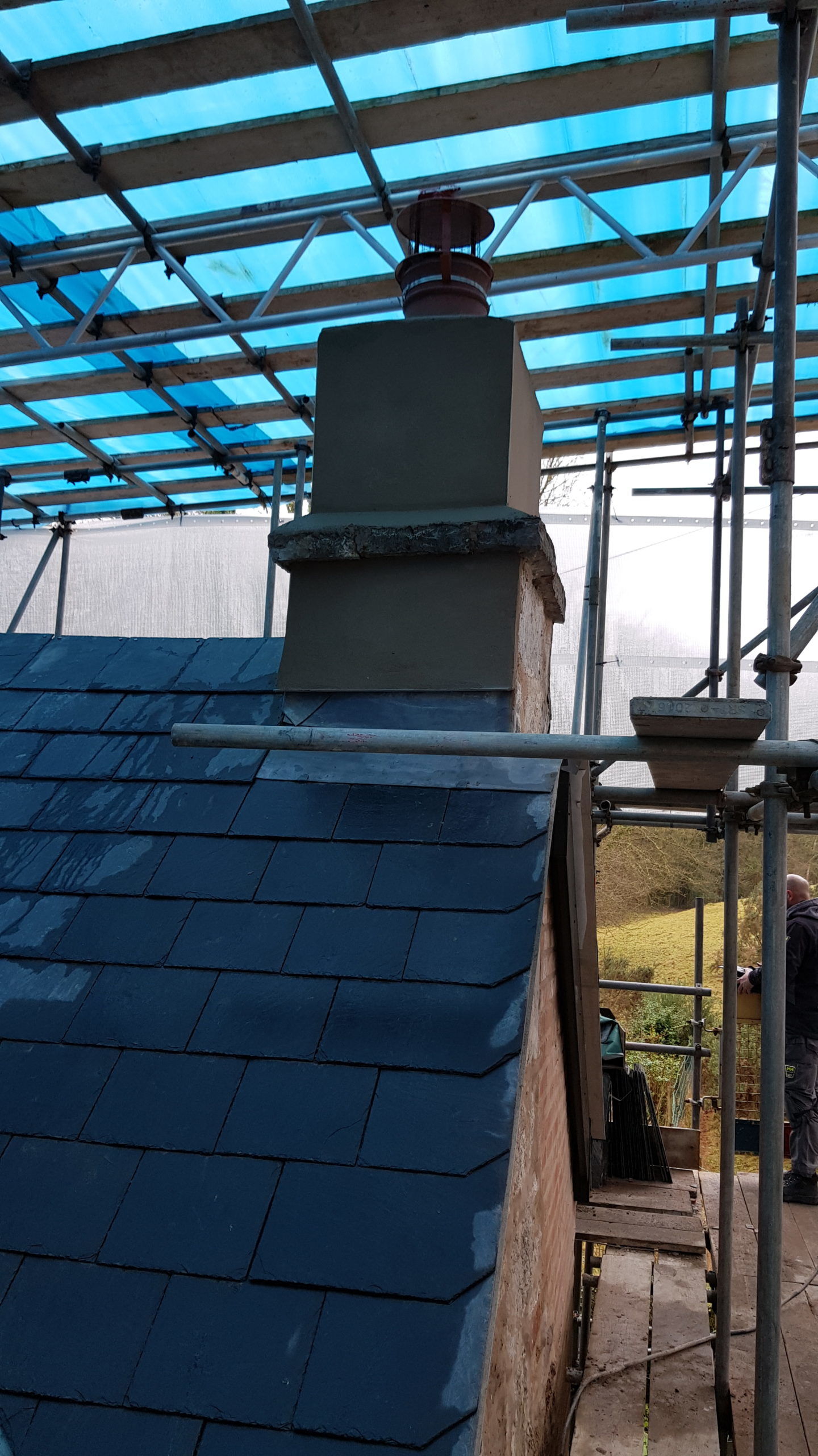 The roofers hope to finish the job by the middle of this week which then means that all the scaffolding can be taken down! The new staircase has been installed. First fix of the electrical and data cabling should now be complete, and we are now waiting for the plumbing first fix to be completed too. The first blowers is in trying to dray out the couple of walls that were not completely covered by the scaffold roof. The original chimney has been re-rendered and all the new exterior doors and windows have been replaced (excluding the front door as it is in constant use and may get damaged!)