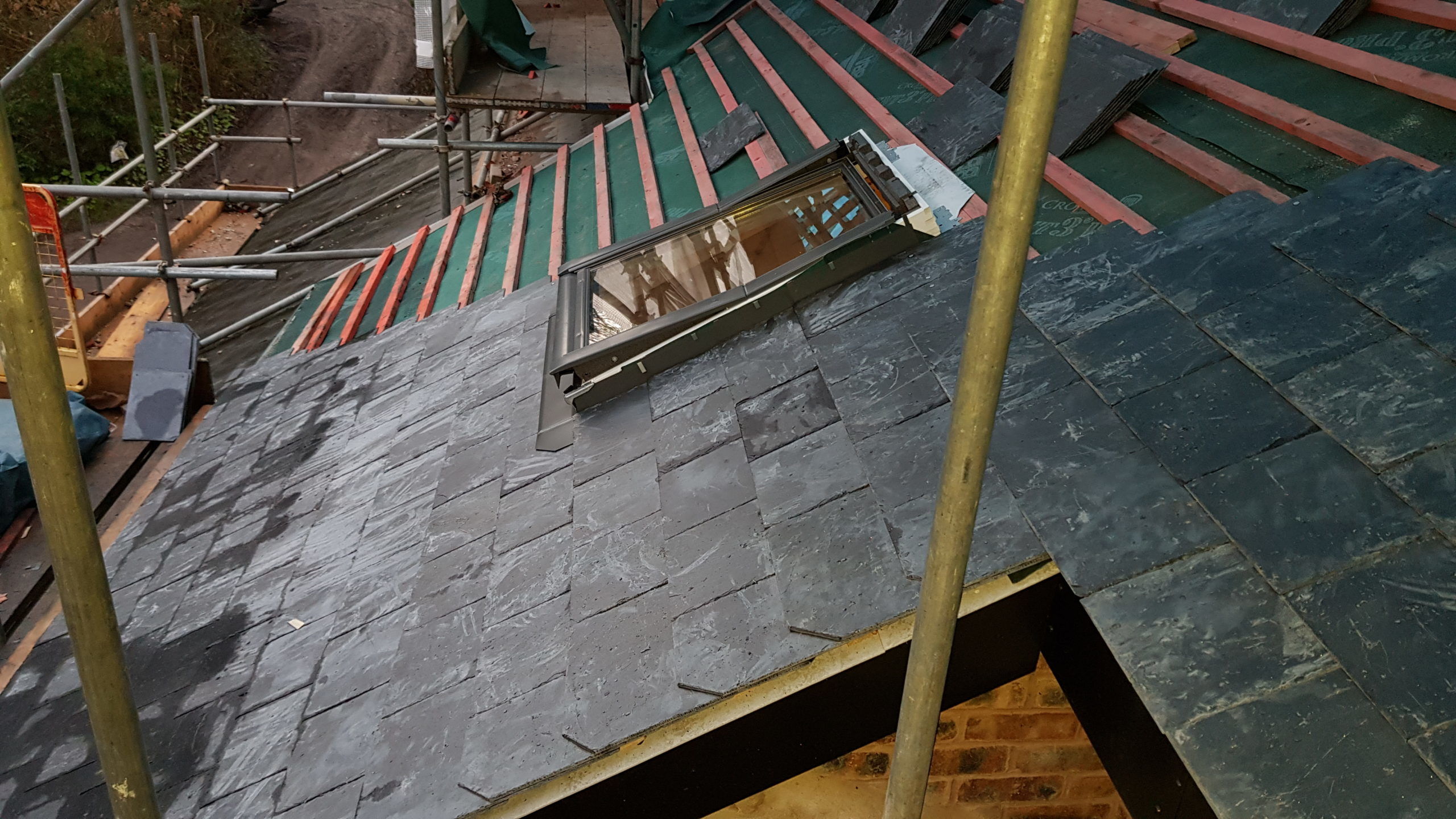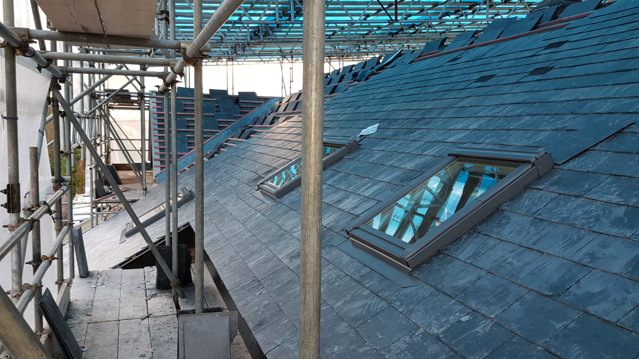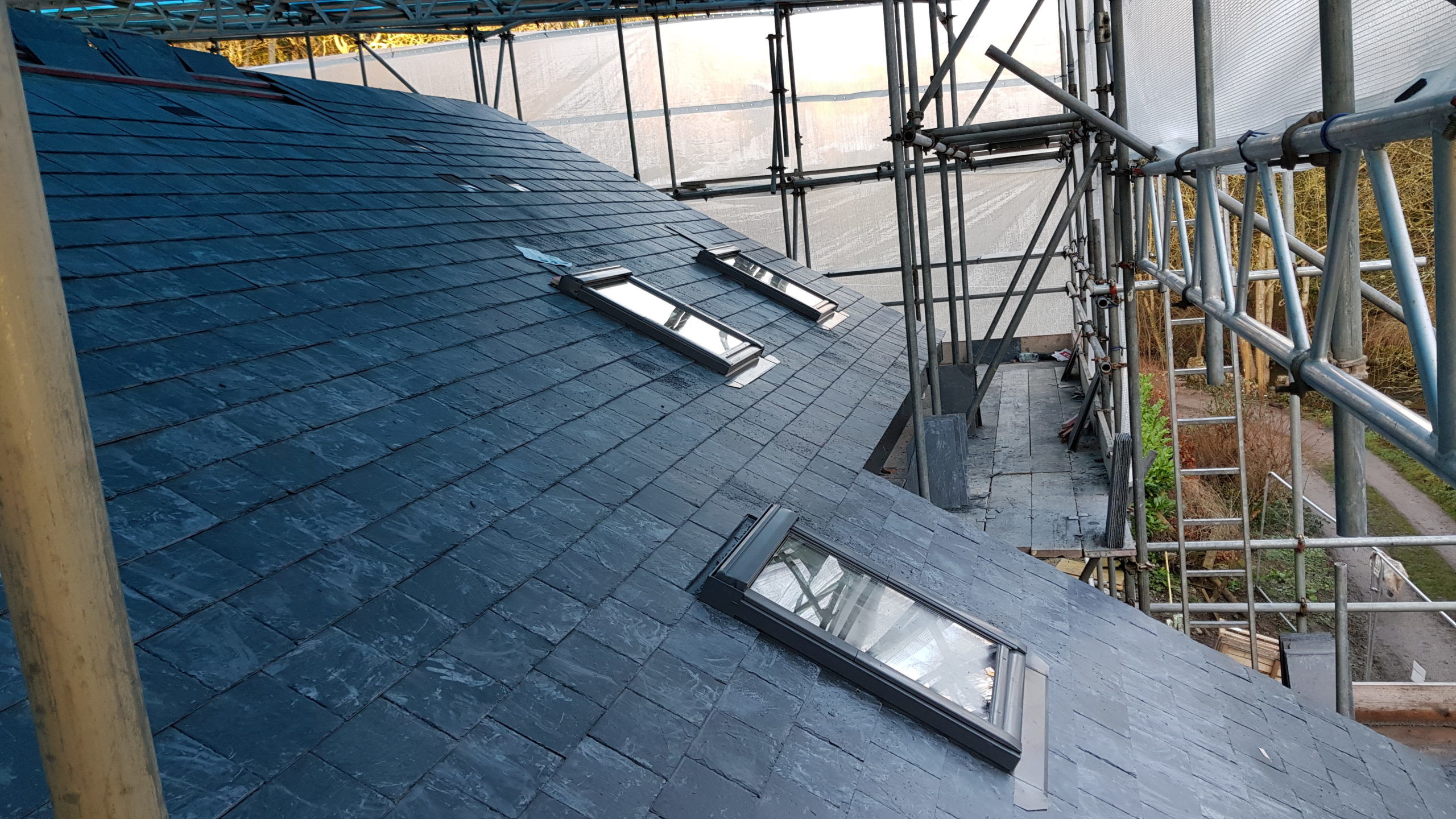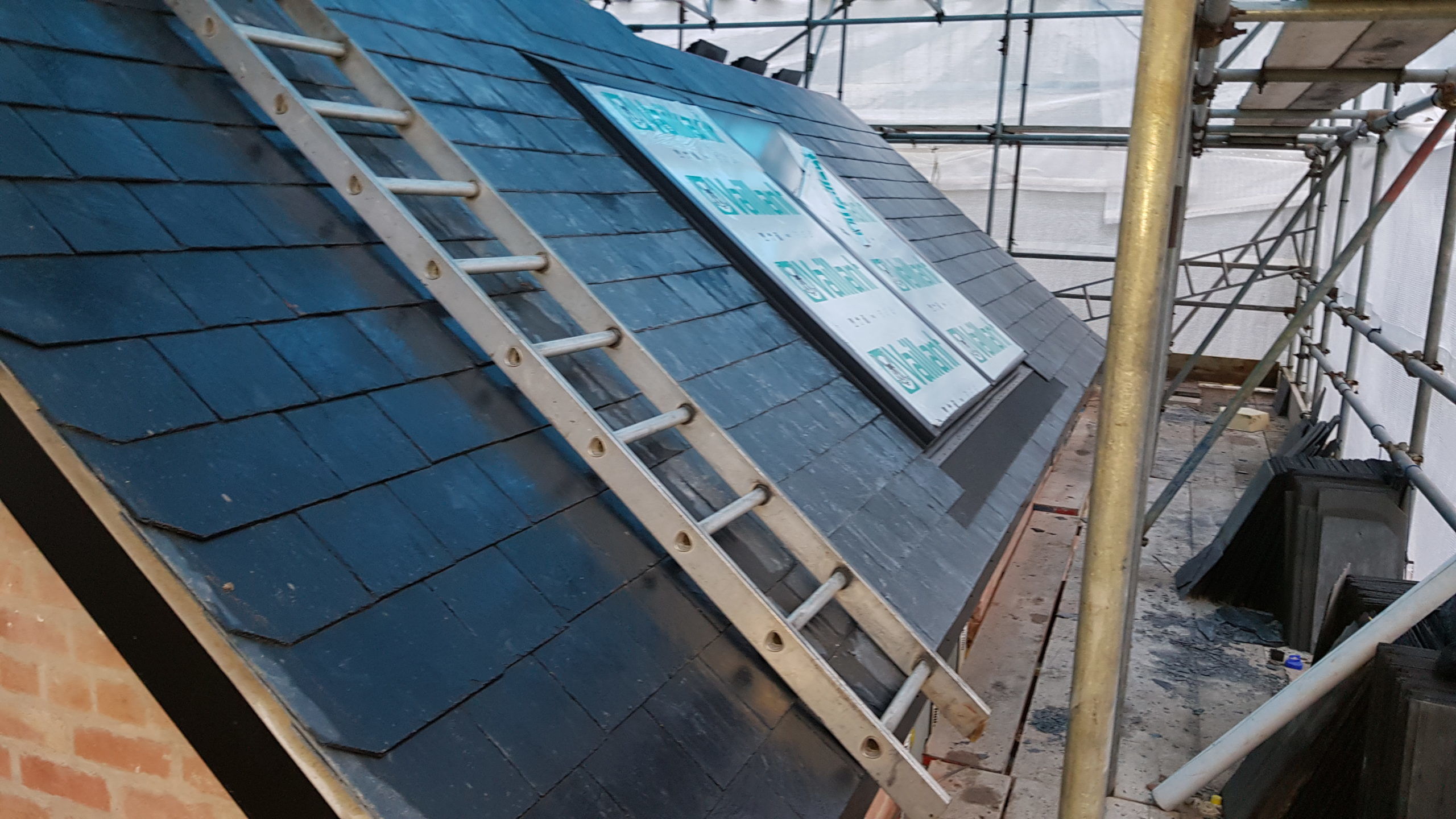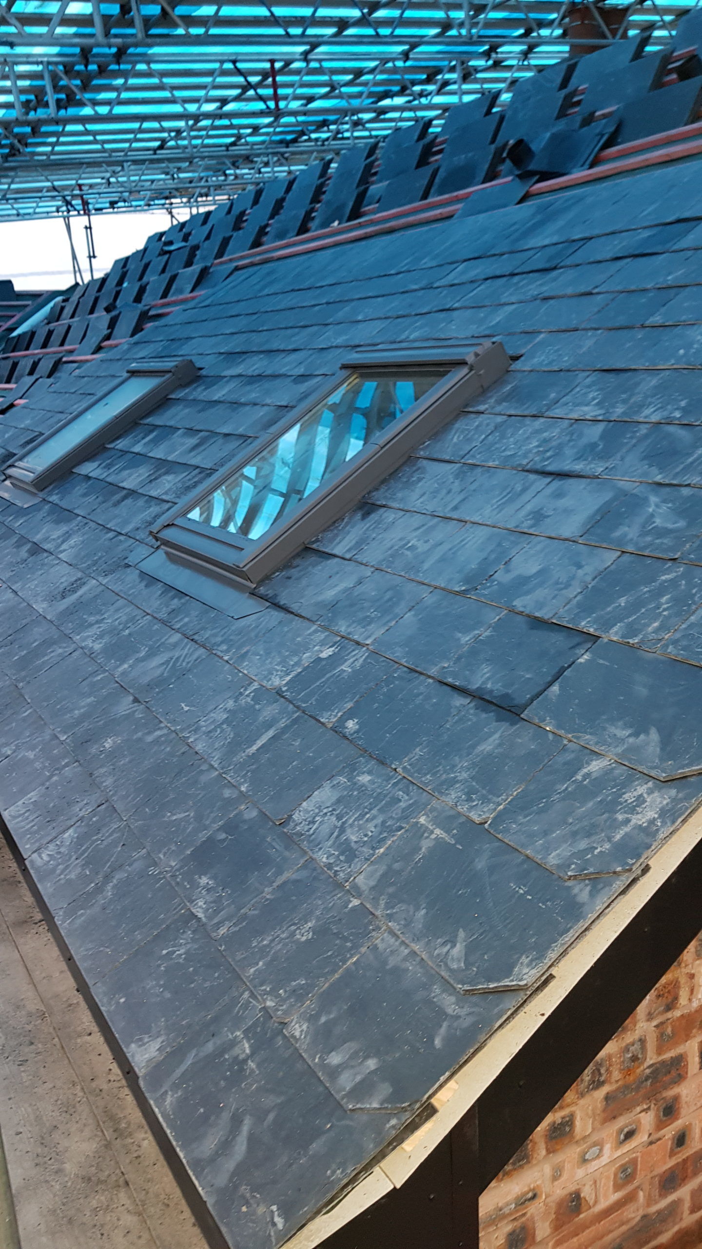 The roofers hope to finish the job by the middle of this week which then means that all the scaffolding can be taken down! The new staircase has been installed. First fix of the electrical and data cabling should now be complete, and we are now waiting for the plumbing first fix to be completed too. The first blowers is in trying to dray out the couple of walls that were not completely covered by the scaffold roof. The original chimney has been re-rendered and all the new exterior doors and windows have been replaced (excluding the front door as it is in constant use and may get damaged!)