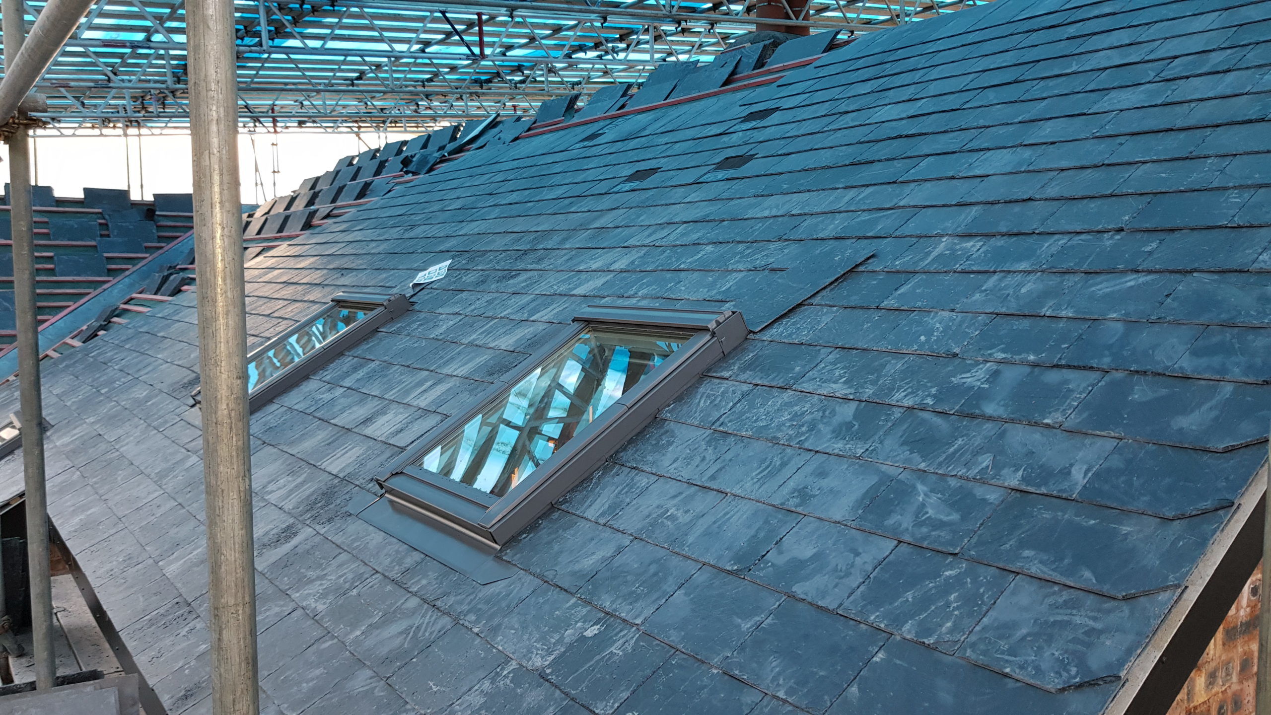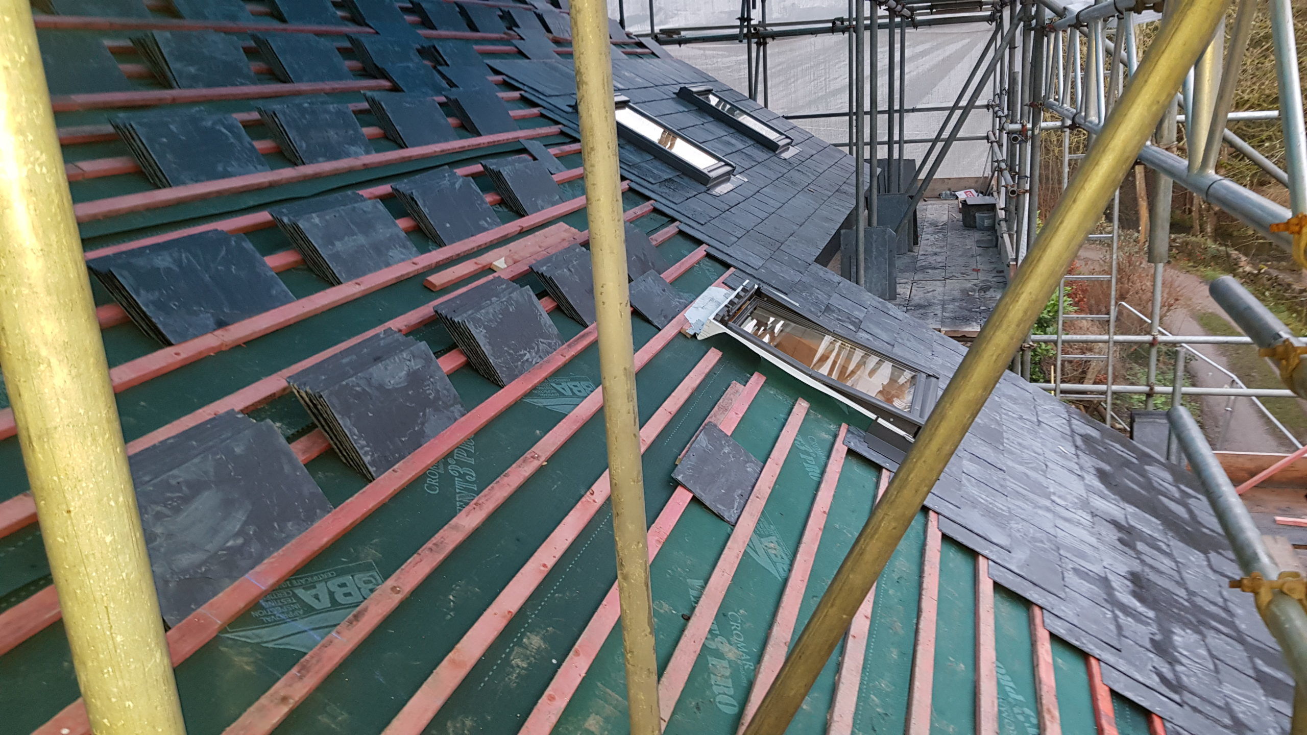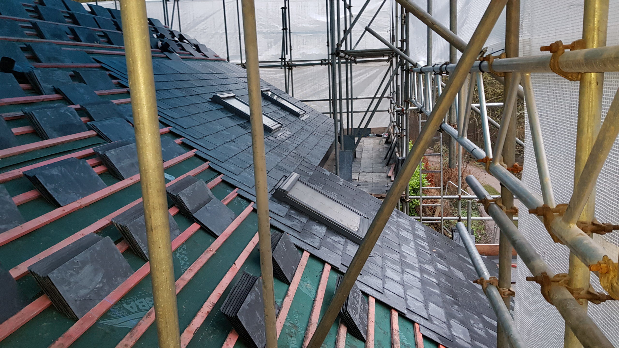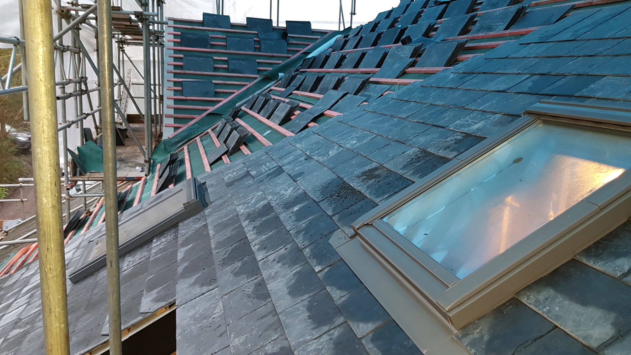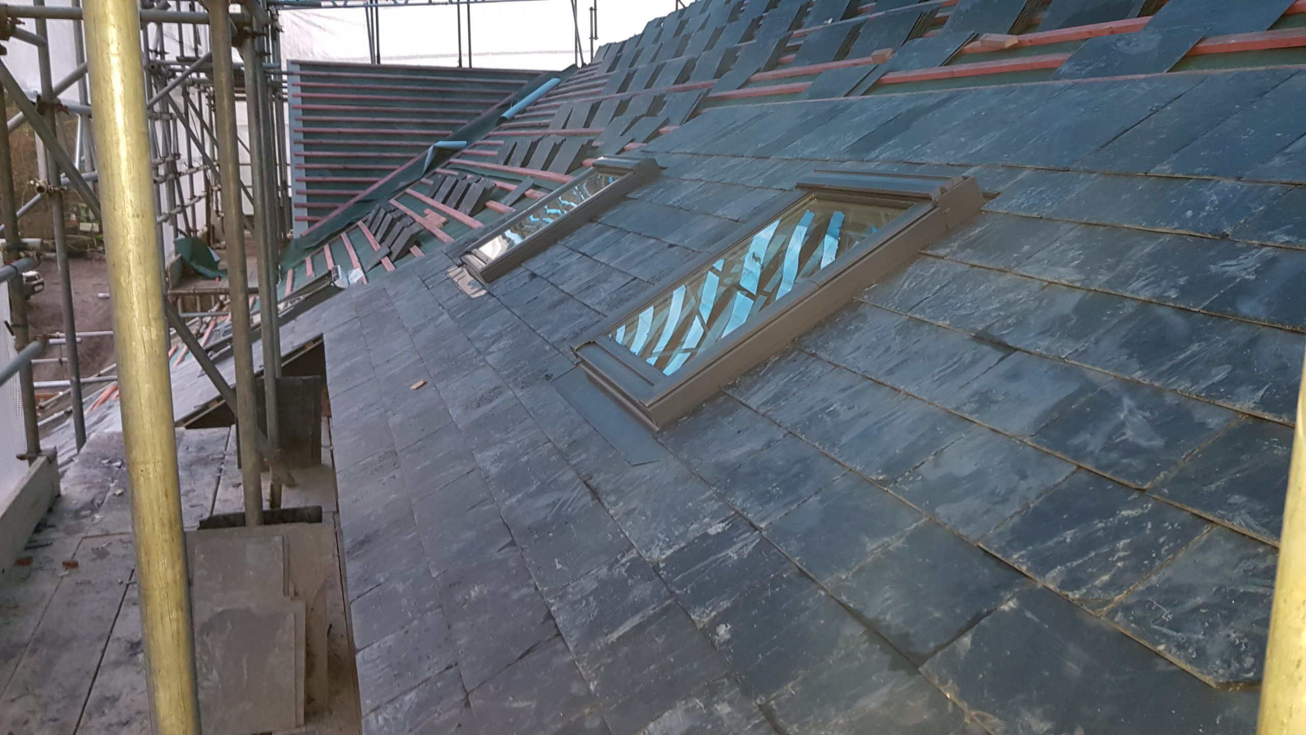 The roofers hope to finish the job by the middle of this week which then means that all the scaffolding can be taken down! The new staircase has been installed. First fix of the electrical and data cabling should now be complete, and we are now waiting for the plumbing first fix to be completed too. The first blowers is in trying to dray out the couple of walls that were not completely covered by the scaffold roof. The original chimney has been re-rendered and all the new exterior doors and windows have been replaced (excluding the front door as it is in constant use and may get damaged!)