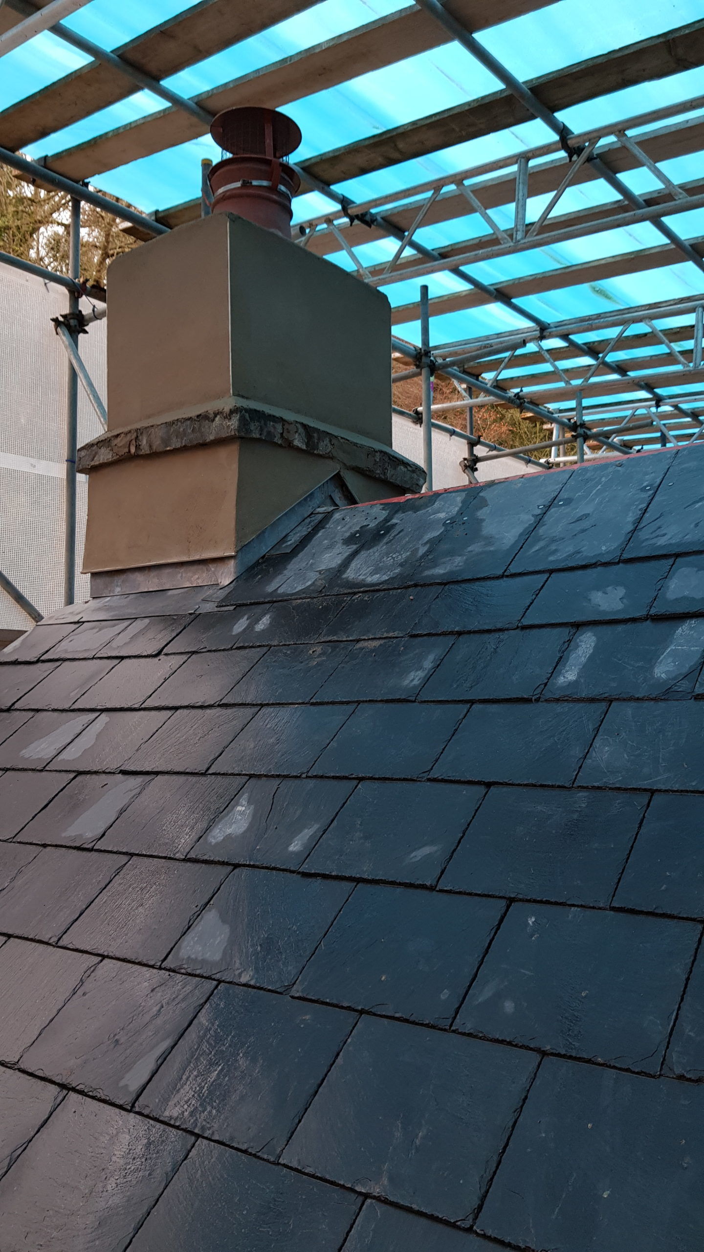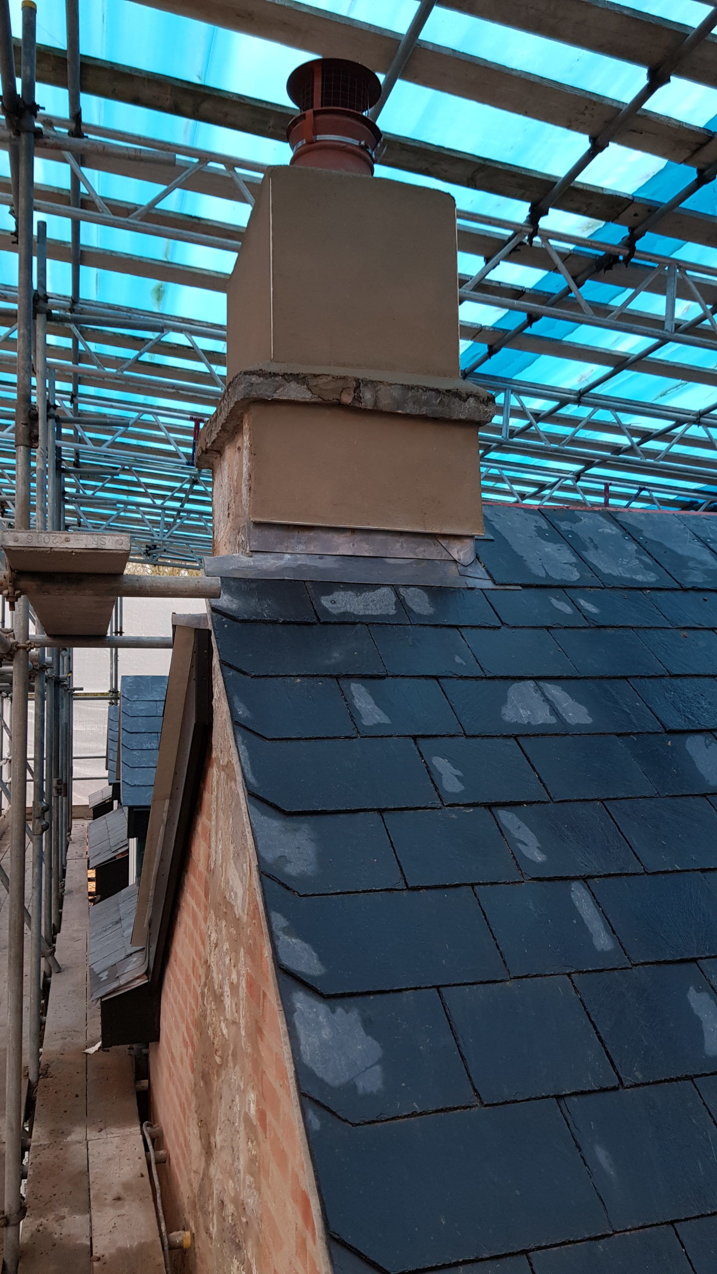 The roofers hope to finish the job by the middle of this week which then means that all the scaffolding can be taken down! The new staircase has been installed. First fix of the electrical and data cabling should now be complete, and we are now waiting for the plumbing first fix to be completed too. The first blowers is in trying to dray out the couple of walls that were not completely covered by the scaffold roof. The original chimney has been re-rendered and all the new exterior doors and windows have been replaced (excluding the front door as it is in constant use and may get damaged!)